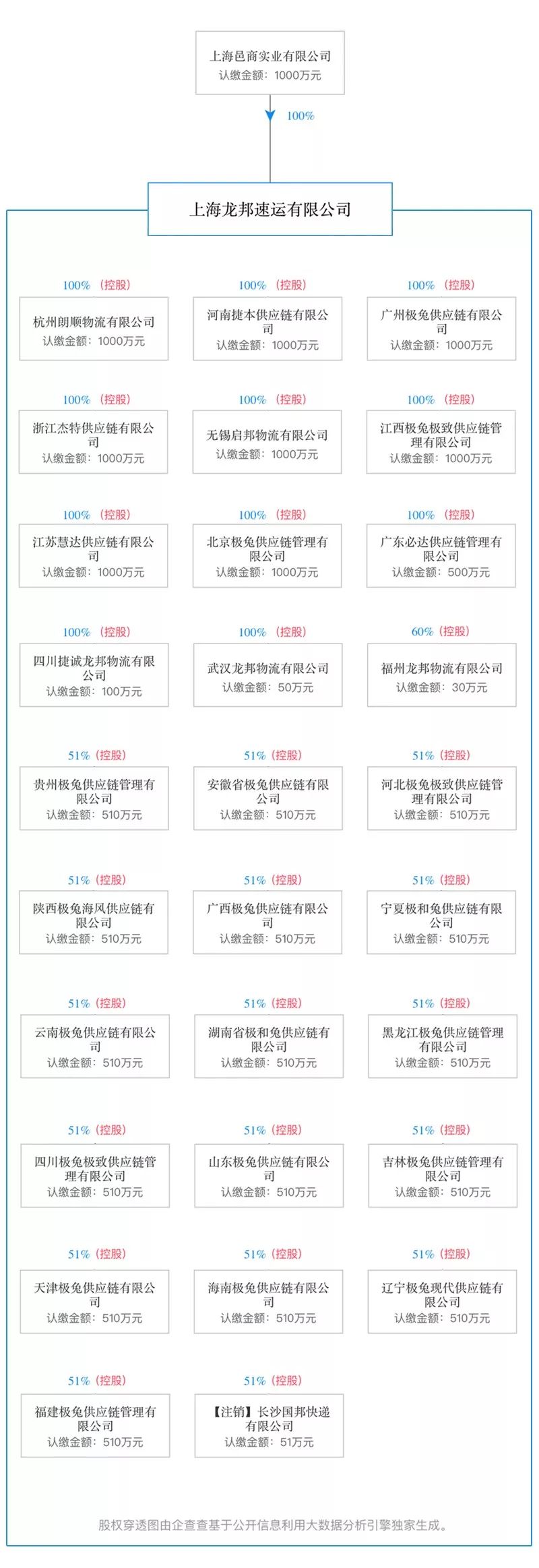 龙邦速运最近新投资成立了多家公司,公司名字的后缀均为极兔供应链有限公司。